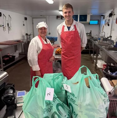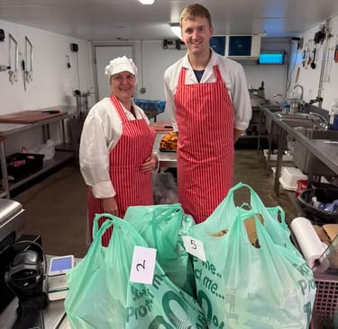 Huge thankyou to Tranco Ltd, Jill and Darren Penn for donating to Fresh Food 4 Working Families CIC Their donation will supply the next three weeks of fresh meat from Helme's Farm Meats, Salwick.Here we have Kellie, rocking the butcher look, and Daniel Helme preparing BBQ meats for this glorious weather.